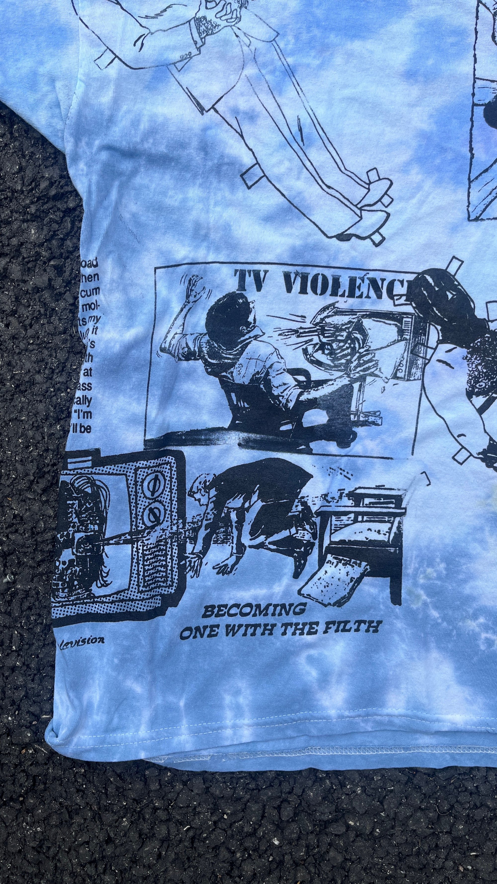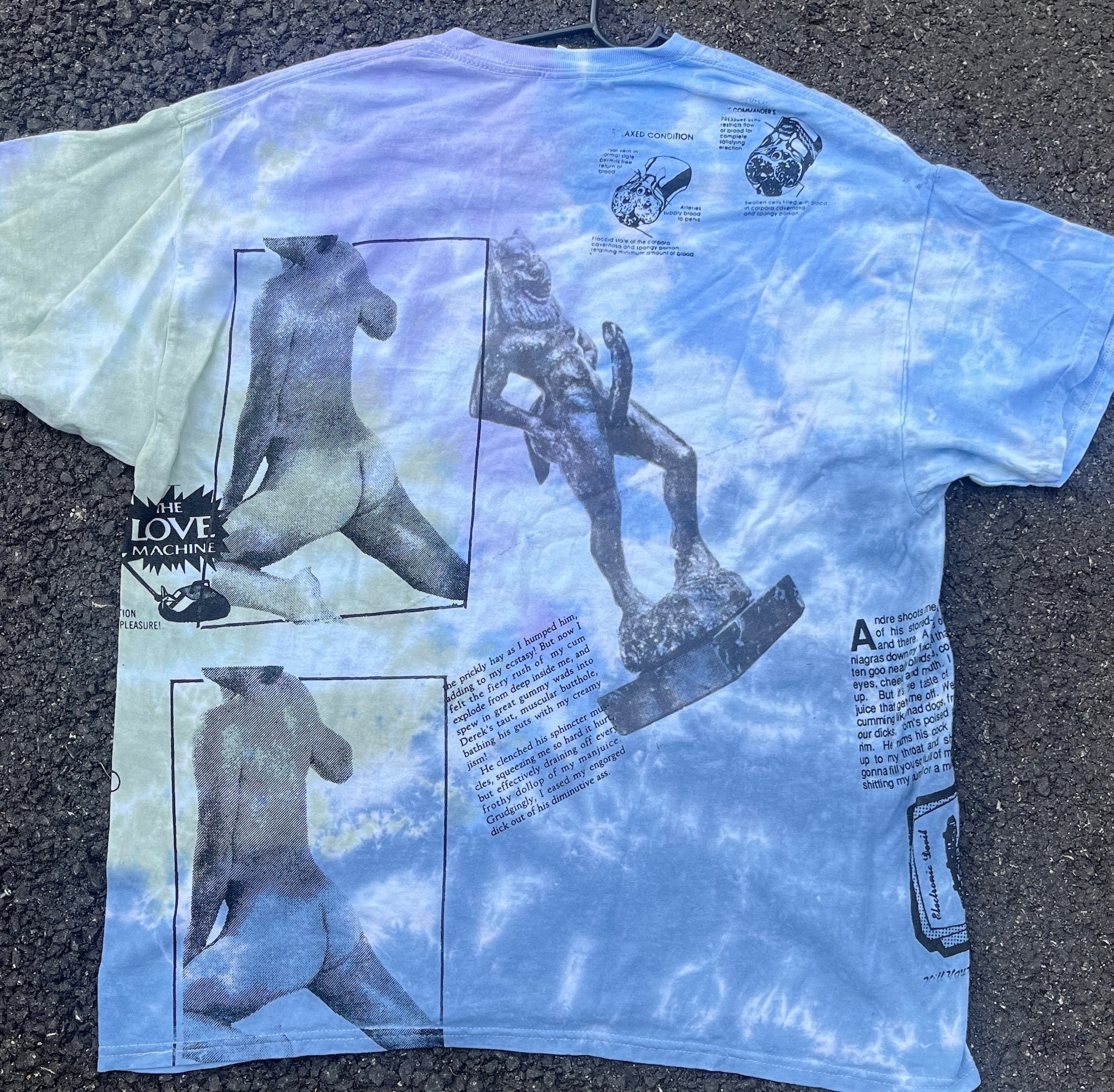 Collaged advertisements, smut, propaganda, literature, etc... Wash on its own the first few times!